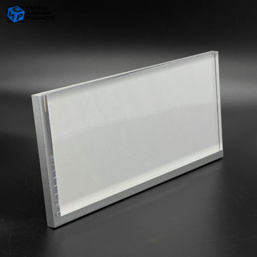 - Materials: Beveled Acrylic "Holder" with a clear Acrylic "Drop-in" Insert